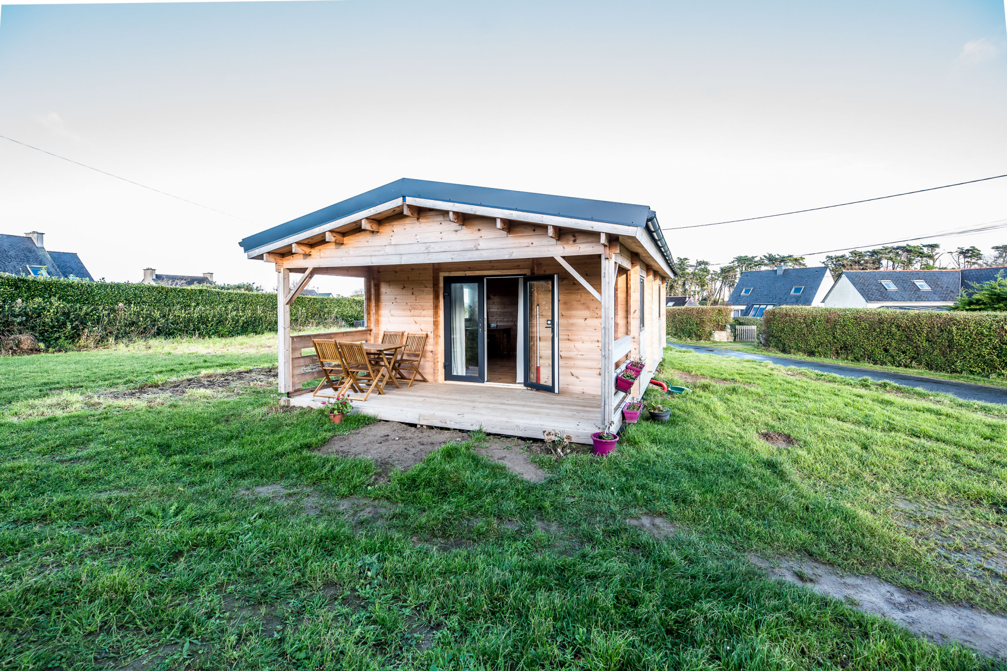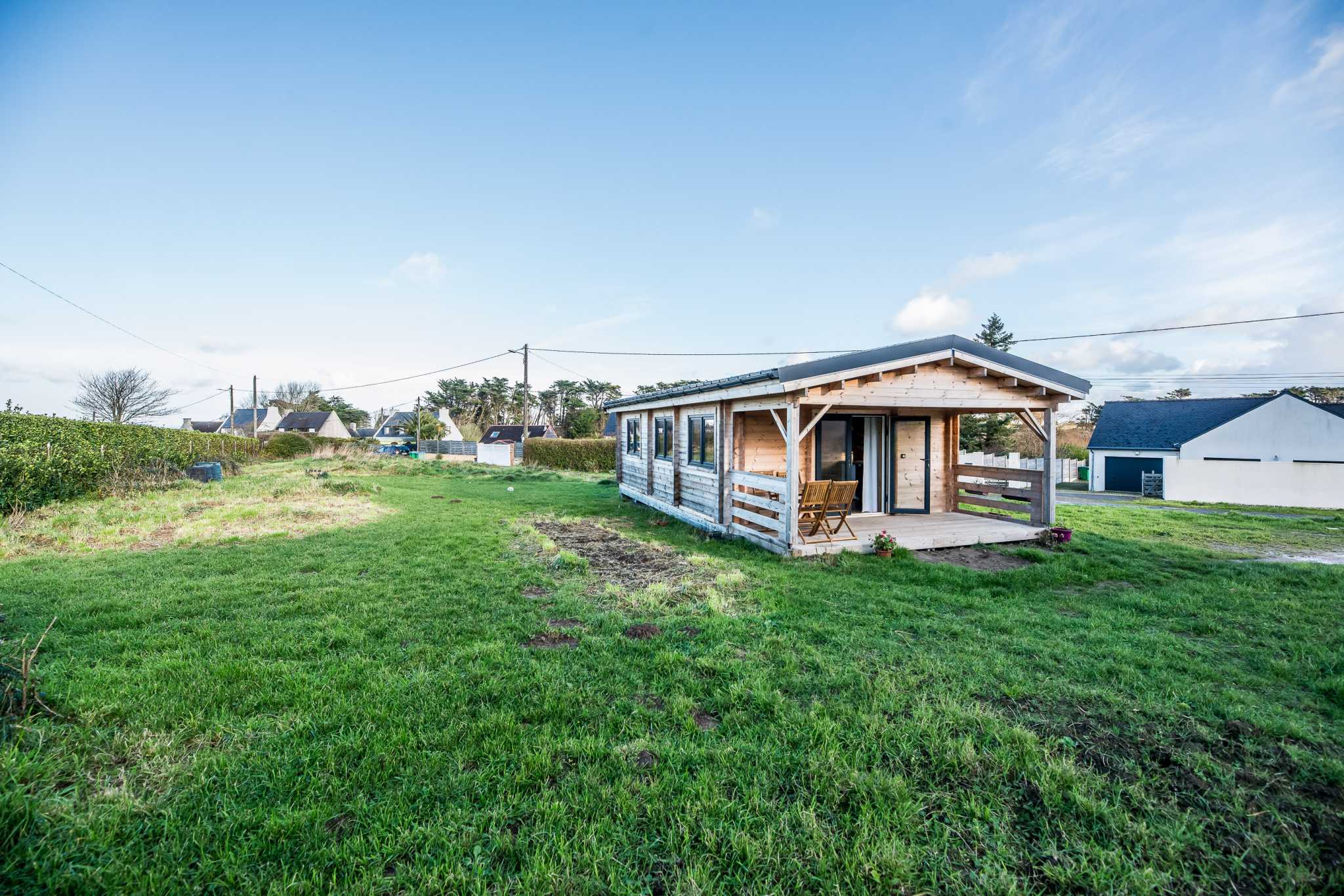 Ploudalmézeau, Pascal AUTRET, Brest Abers Immobilier vous présente ce châlet en BOIS de 2024 de 34m2 en PLAIN PIED situé à 200m des plages de Tréompan.