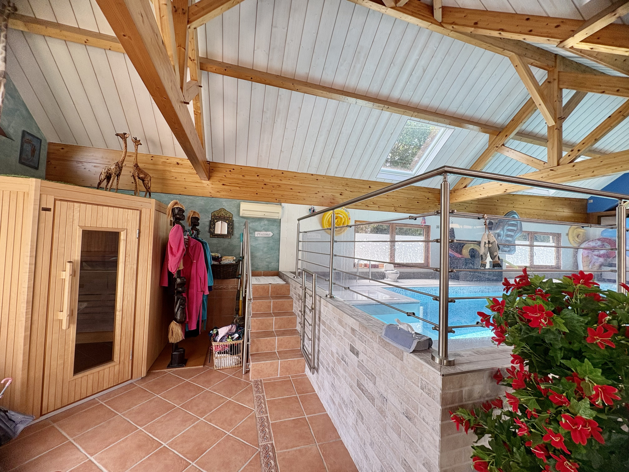 - Un ESPACE BIEN-ETRE de 113 M2 comprenant une piscine intérieure chauffée avec nage à contre-courant, un sauna / hammam, une salle d'eau avec wc, et un coin salon créant une ambiance digne d'un SPA privé à domicile.