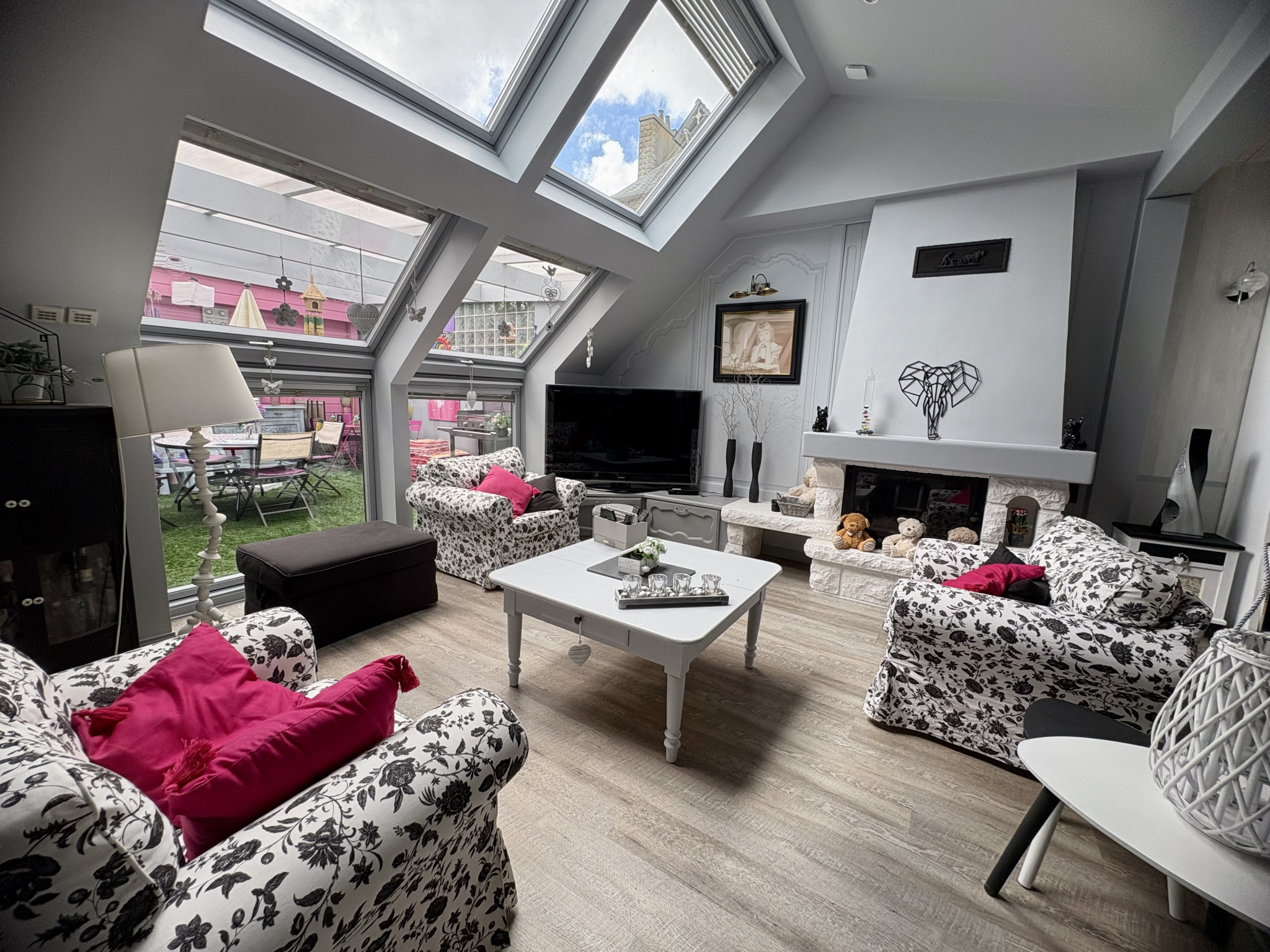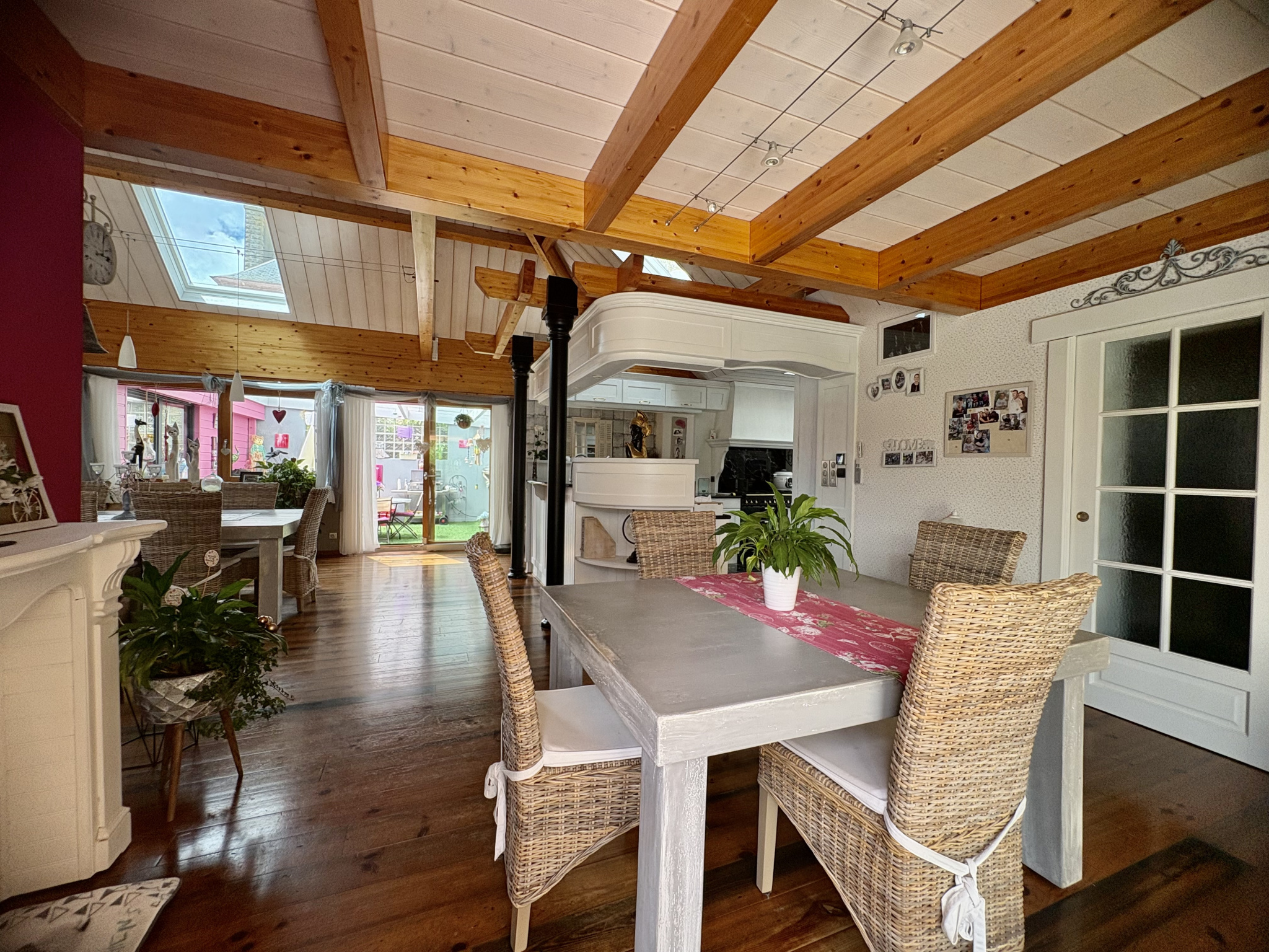 Le séjour de 54 M2, véritable coeur de la maison, se situe au centre des pièces de vie, la cuisine américaine et un coin-repas complètent l'espace.
