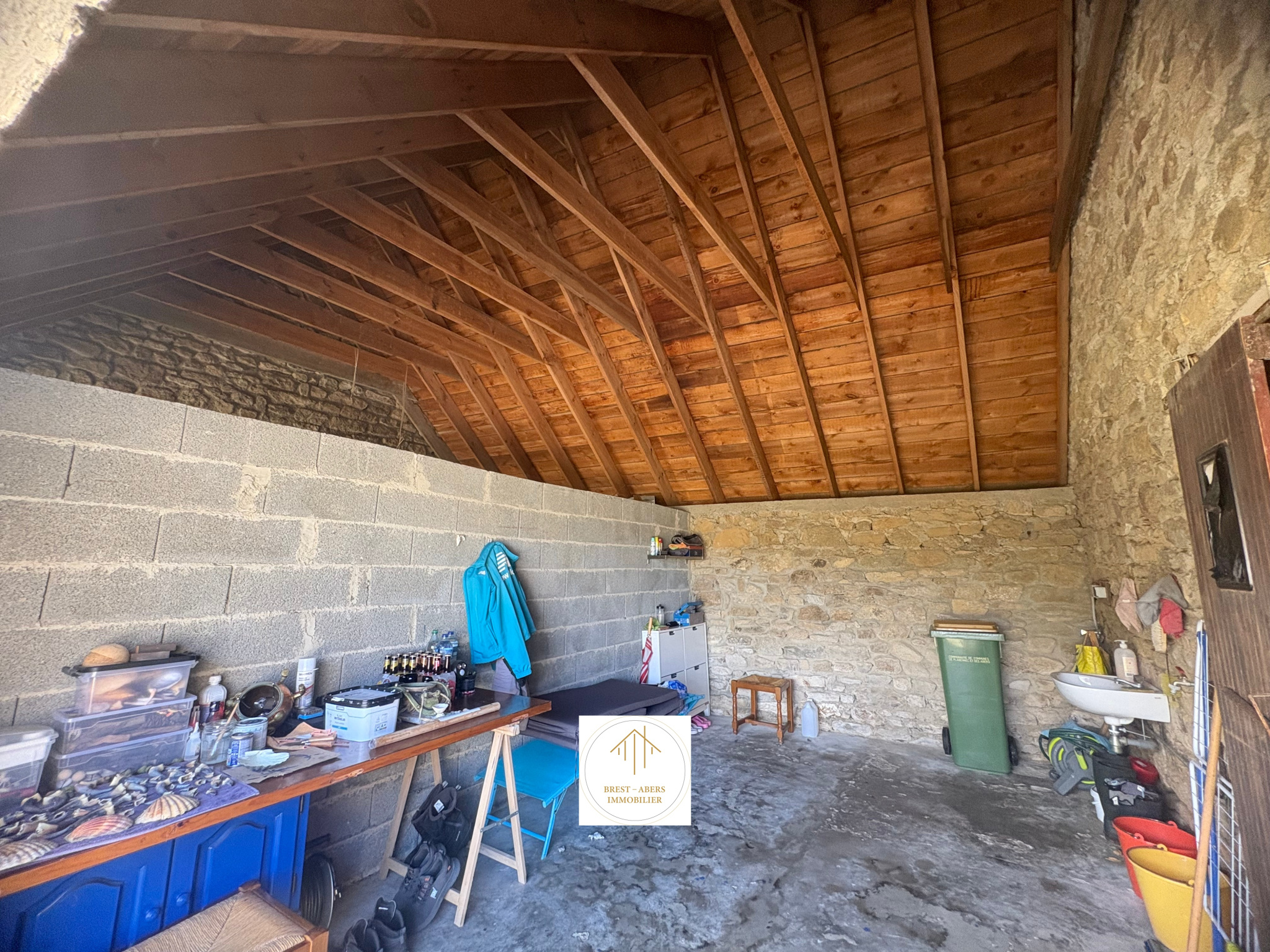 Le double-garage, attenant à la véranda, abritera le matériel nautique et véhicules, ou pourra être transformé en habitable , ajoutant 40 M2 environ à la surface actuelle (plan d'aménagement sur demande).