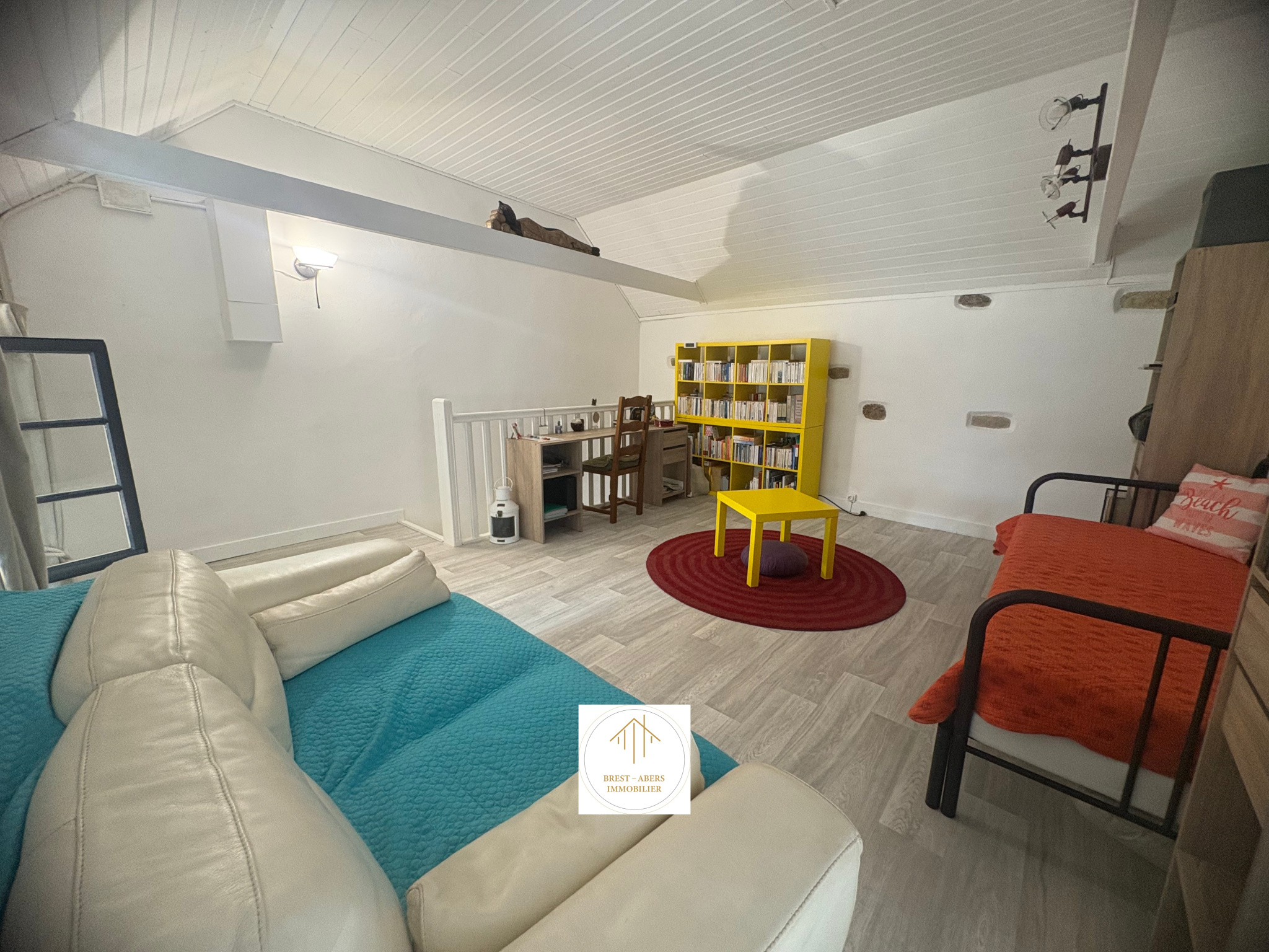 La mezzanine à l'étage peut se transformer en chambre supplémentaire, avec peu de frais (création de cloisons et d'un vélux).