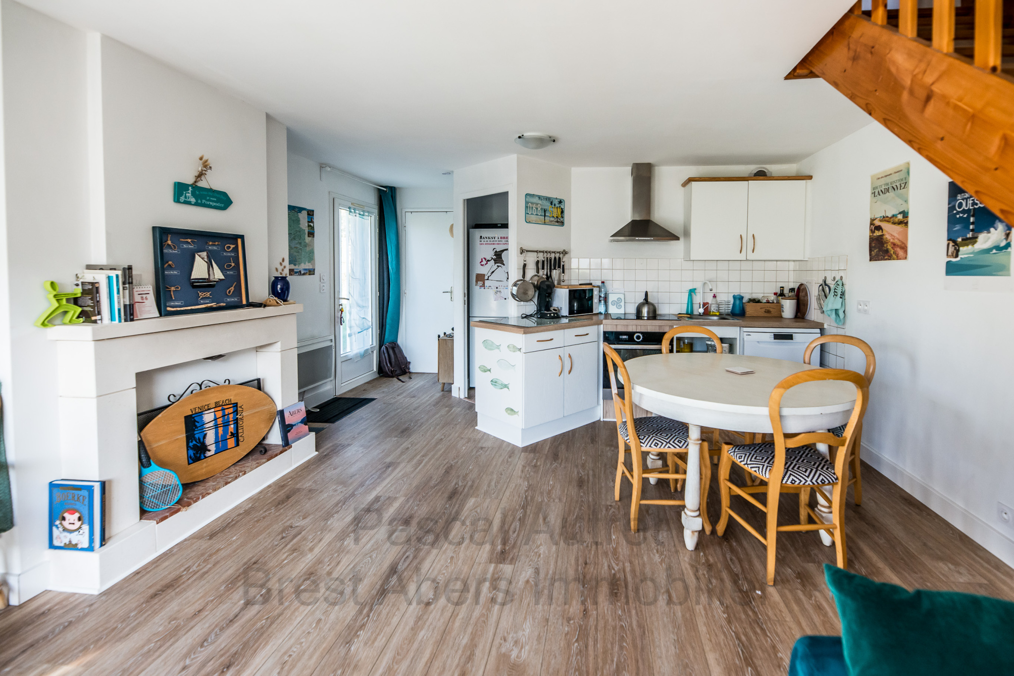 À seulement 150 mètres du port d'Argenton, dans le secteur très recherché de Landunvez, découvrez cette charmante maison de 55 m2, construite en 1998, sur un terrain clos et paysagé de 309 m2.