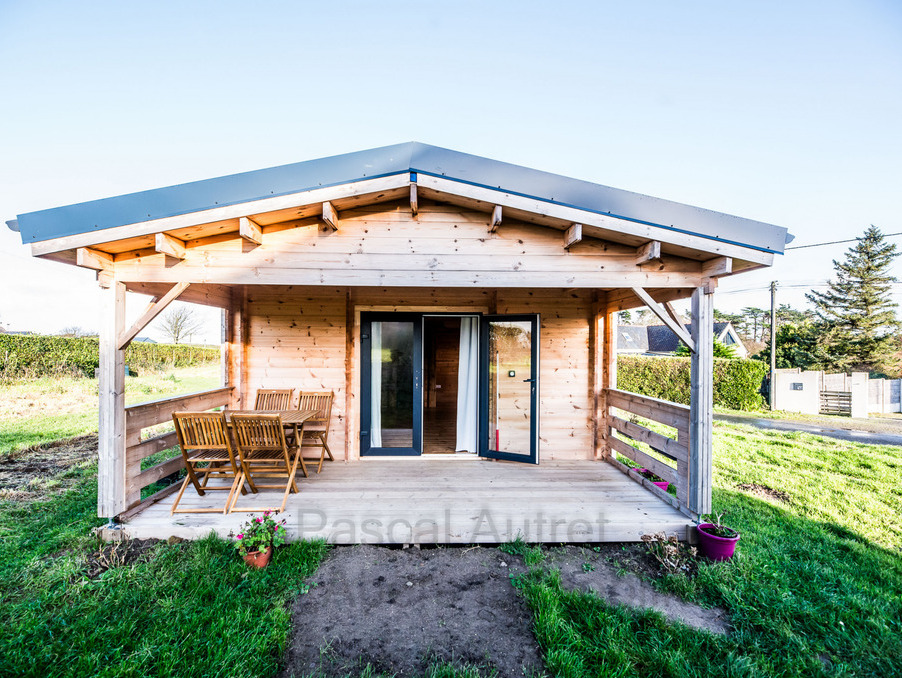 Ploudalmézeau, Pascal AUTRET, Brest Abers Immobilier vous présente ce châlet en BOIS de 2024 de 34m2 en PLAIN PIED situé à 200m des plages de Tréompan.