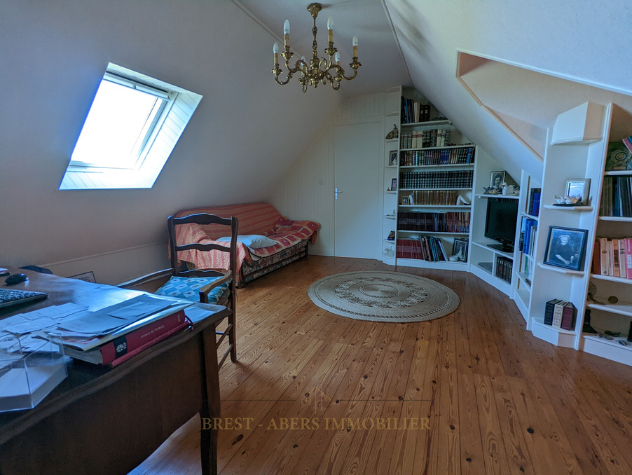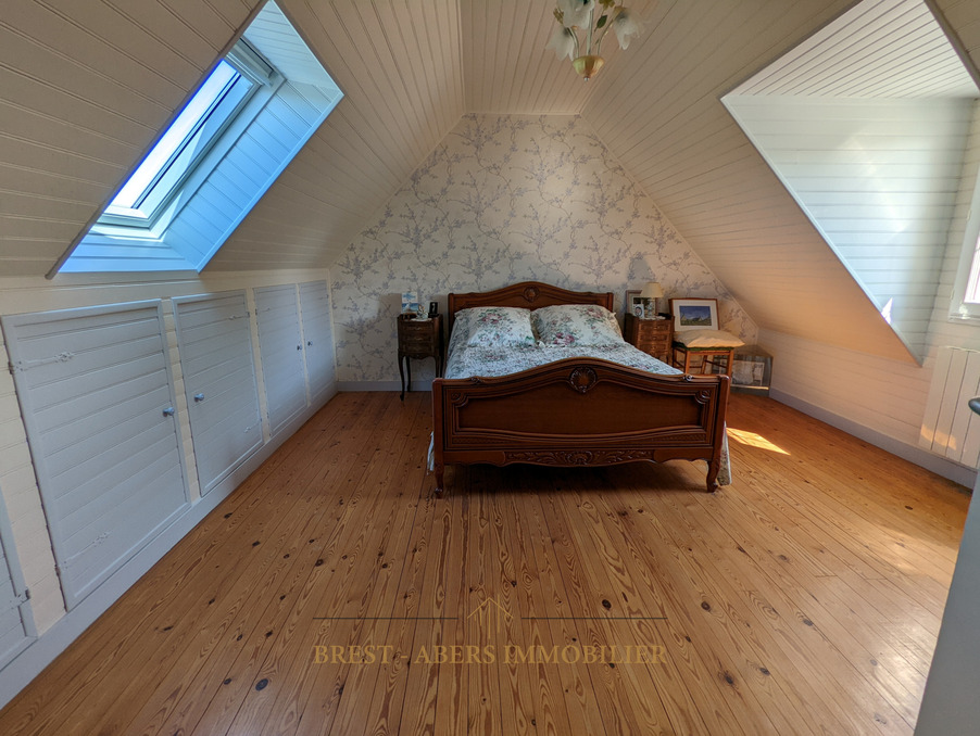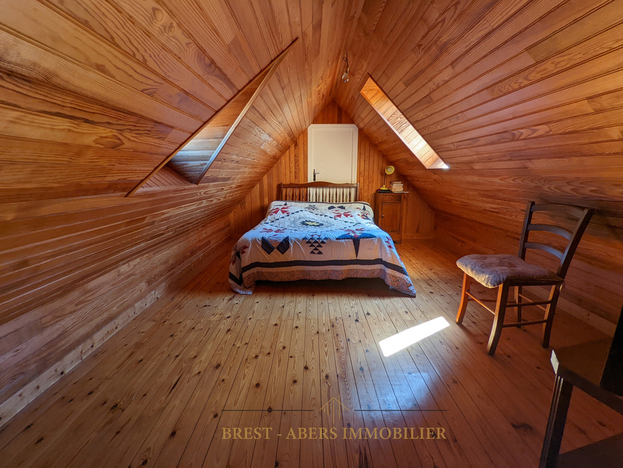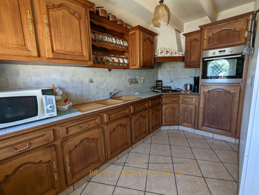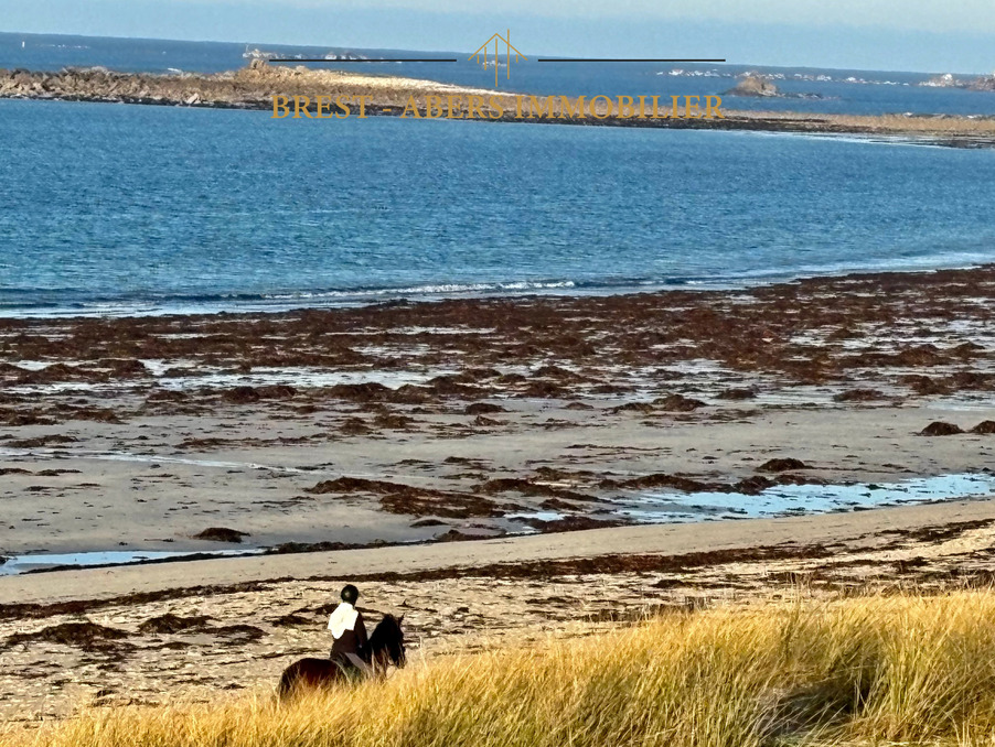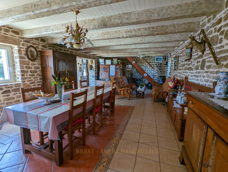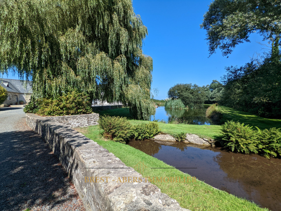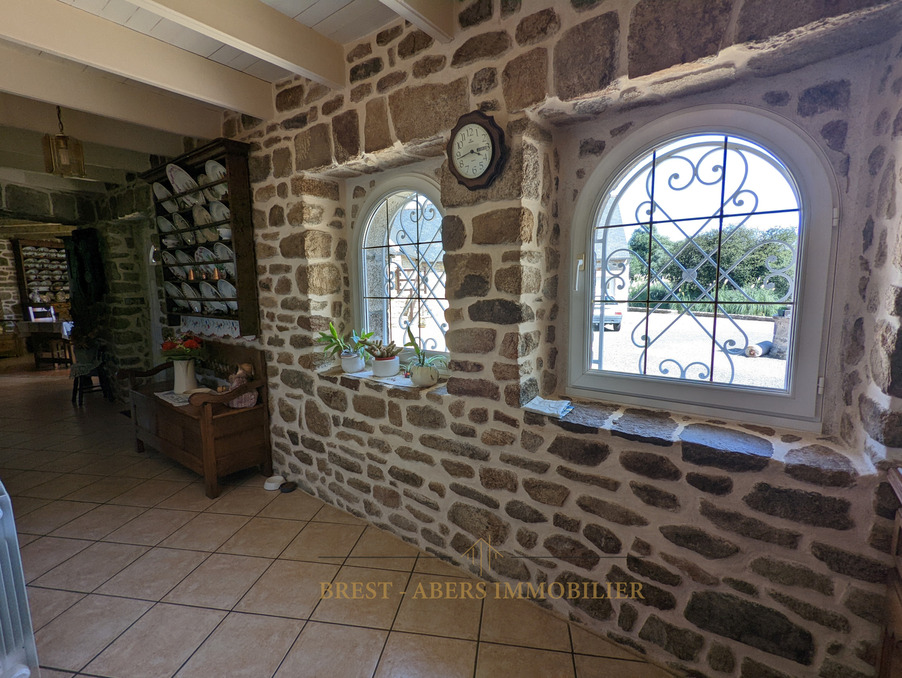 PLOUGUERNEAU, Sylvie TROMELIN BREST-ABERS IMMOBILIER, vous présente cette longère en pierre de 122 m2 avec un double garage de 70 m2 et un atelier de 40 m2 tous 2 aménageables, un étang, le tout sur un terrain de 1,4 hectares. Vue lointaine MER. Accès au bord de mer par un chemin agricole directement accessible de la propriété.